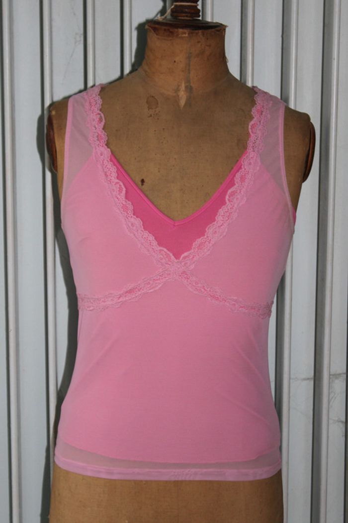 Petit haut rose transparent, à porter sur un débardeur. Acheté en Chine 🇨🇳 il y a 13 ans. Peu porté. Je l'ai également en kaki. Je vends également le débardeur au prix de 3€ et je l'ai également en vert pomme 🍏. 6€ si vous prenez l'ensemble.