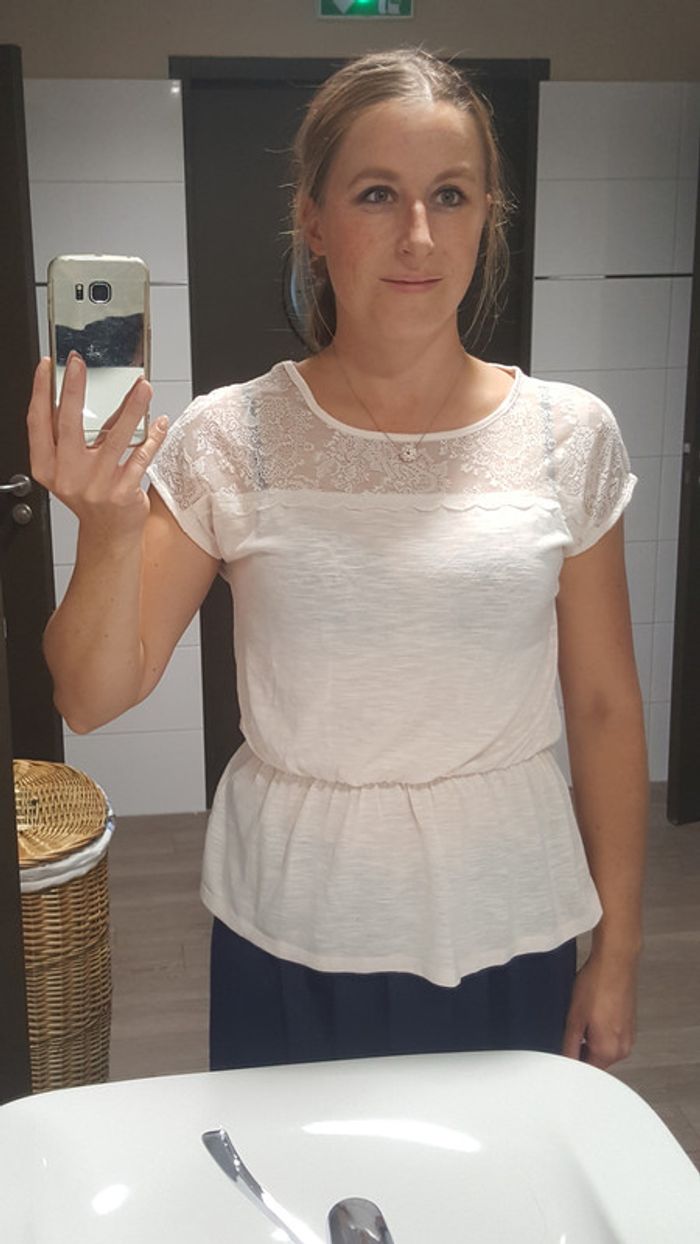 En coton stretch, très élégant. De couleur rose très pale. Je ne l'ai pas porté car je le trouve trop petit pour moi.