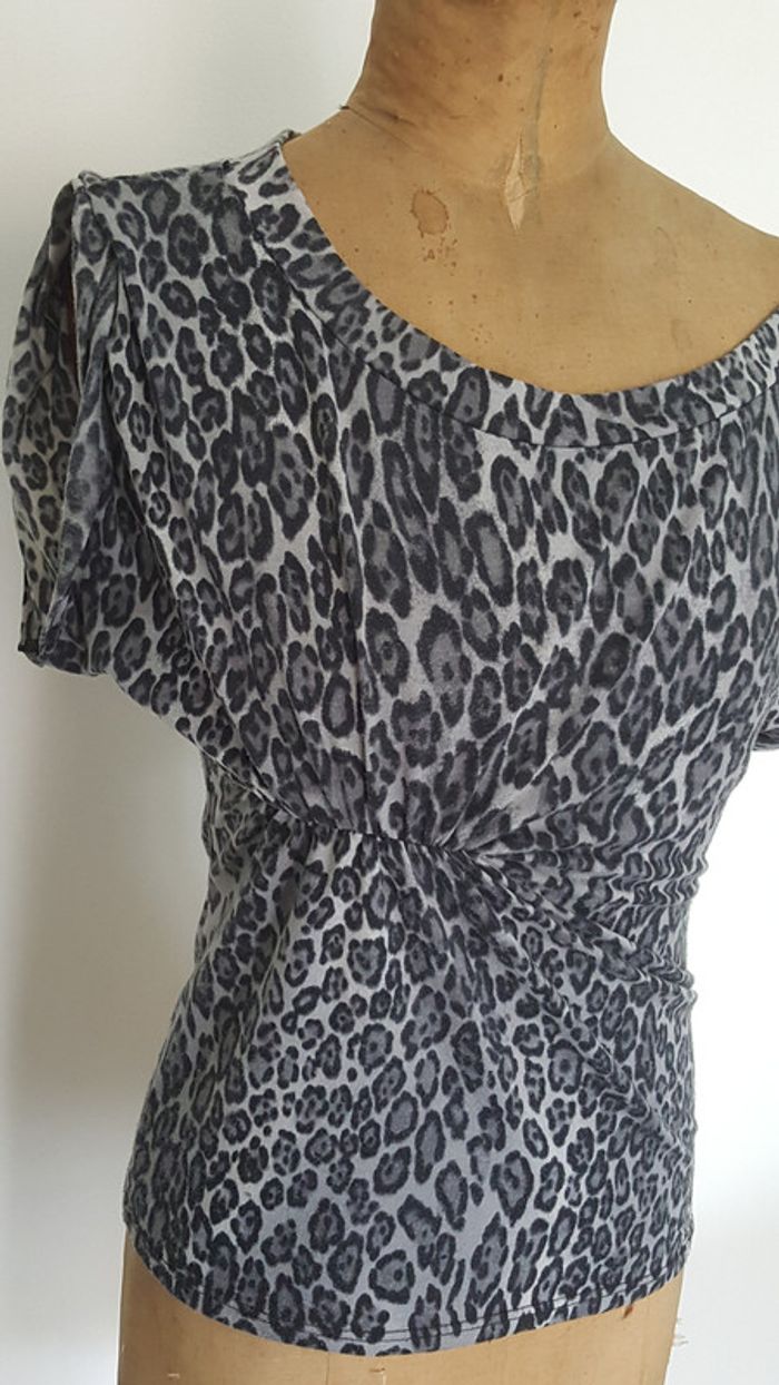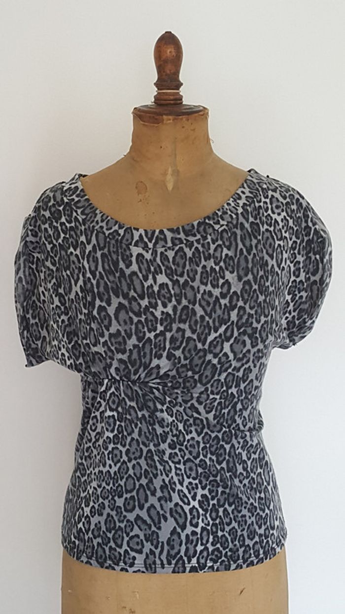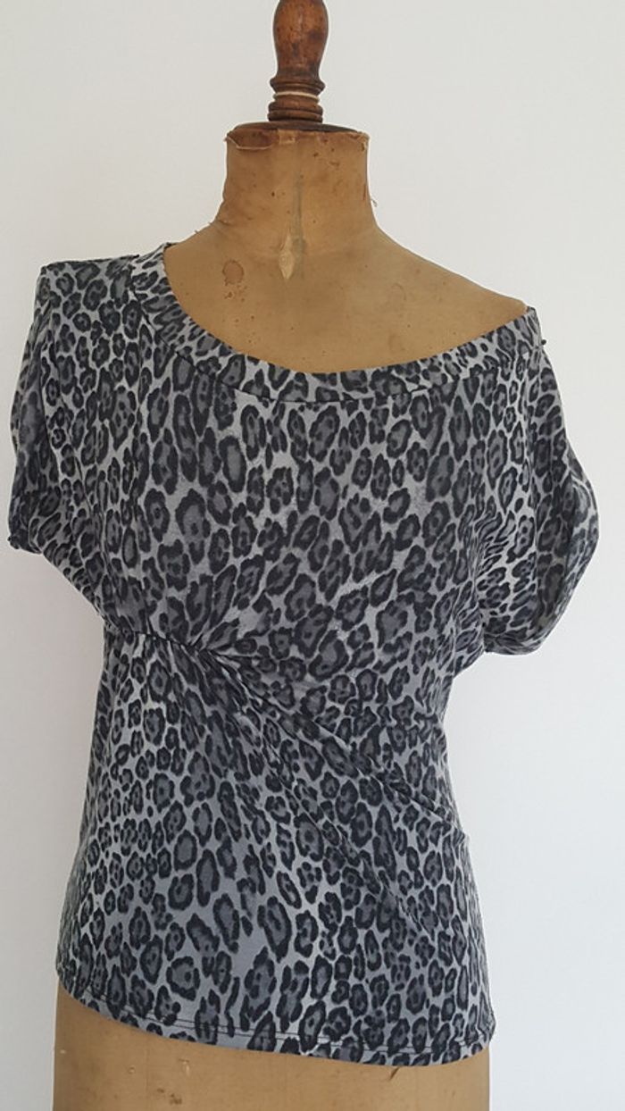 Jolis détails au niveau de l'épaule destructurée, du roulé des manches et du froncé de la poitrine,