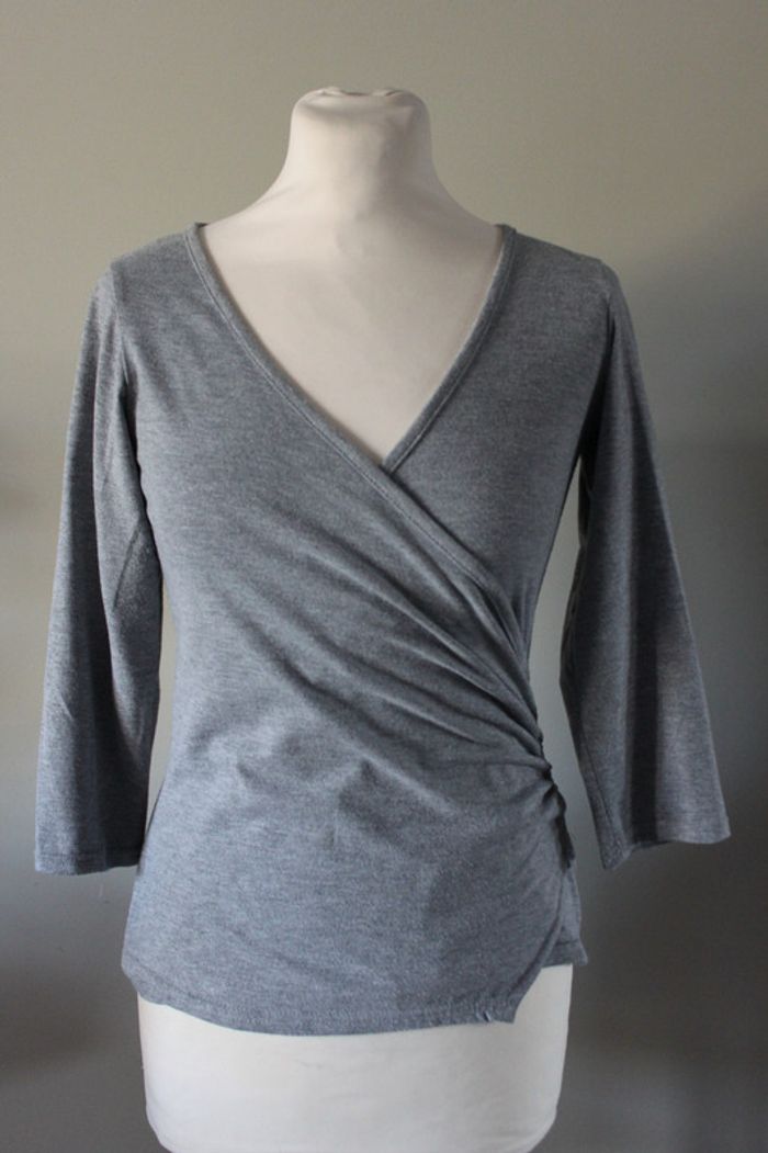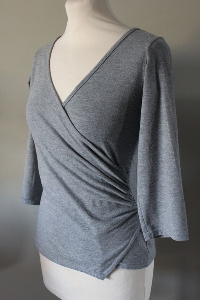 En tissu stretch. Gris légèrement pailleté.