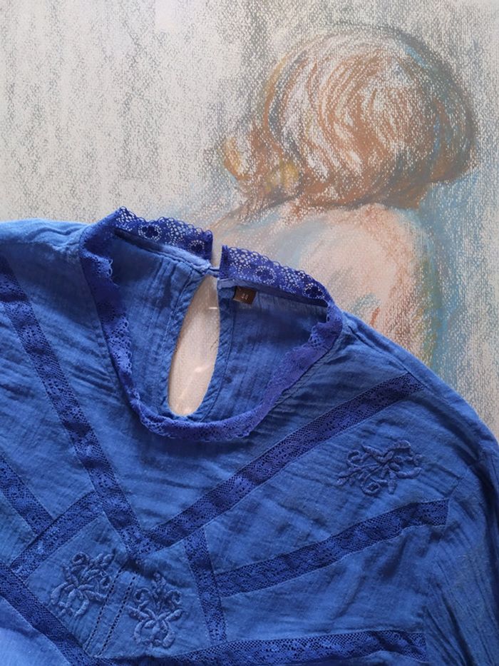 Blouse en coton bleu roi 44 - photo numéro 3