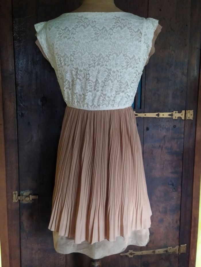Robe doublée avec de jolis détails. Très élégante. Correspond à un 38