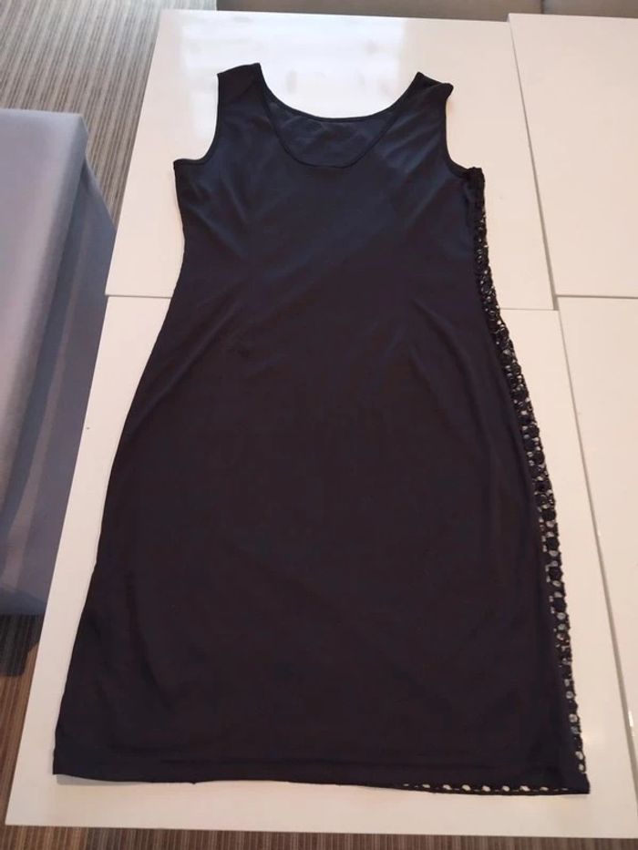 Robe de soirée courte noire, pailletée devant. Taille 38-40