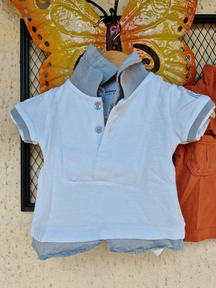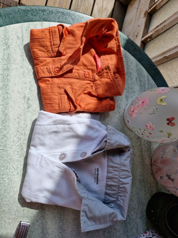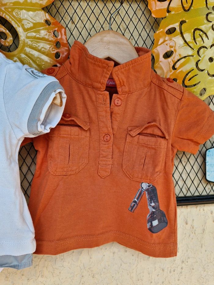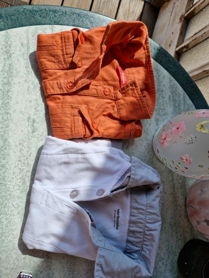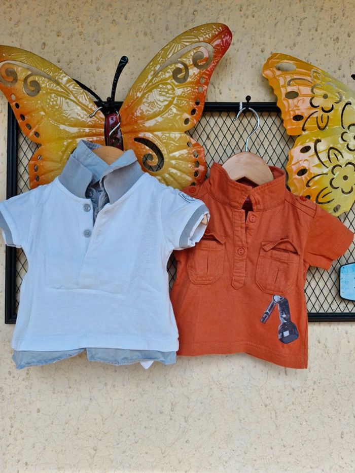 #manouwgarcon6mois Lot de 2 tee shirts garçon, 1 tissaia, couleur brique 1 verbaudet, col chemise, couleur blanc et gris Taille 6 mois Très bon état