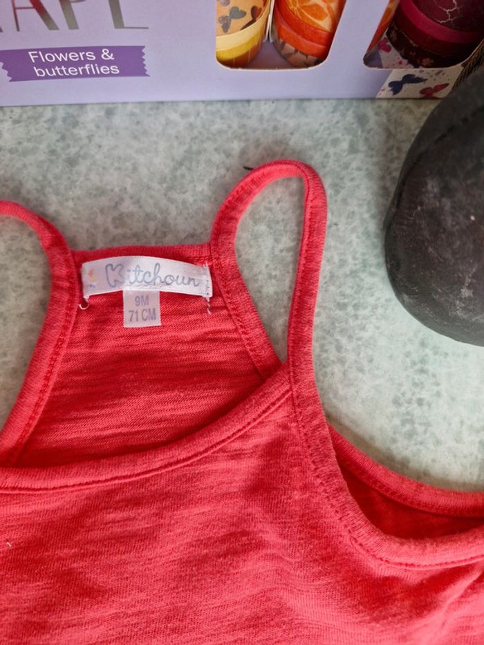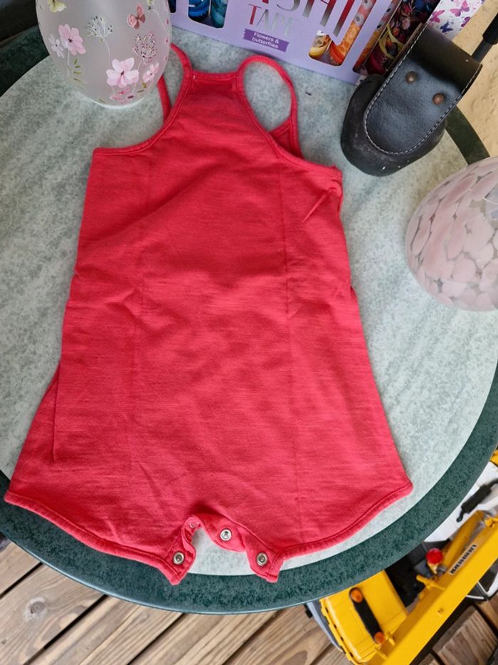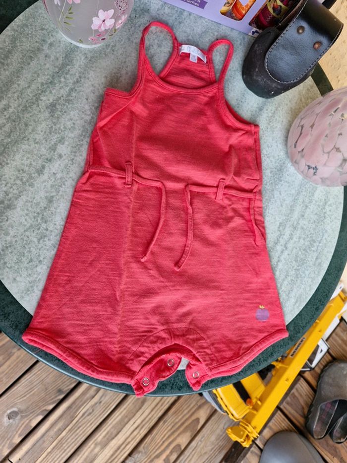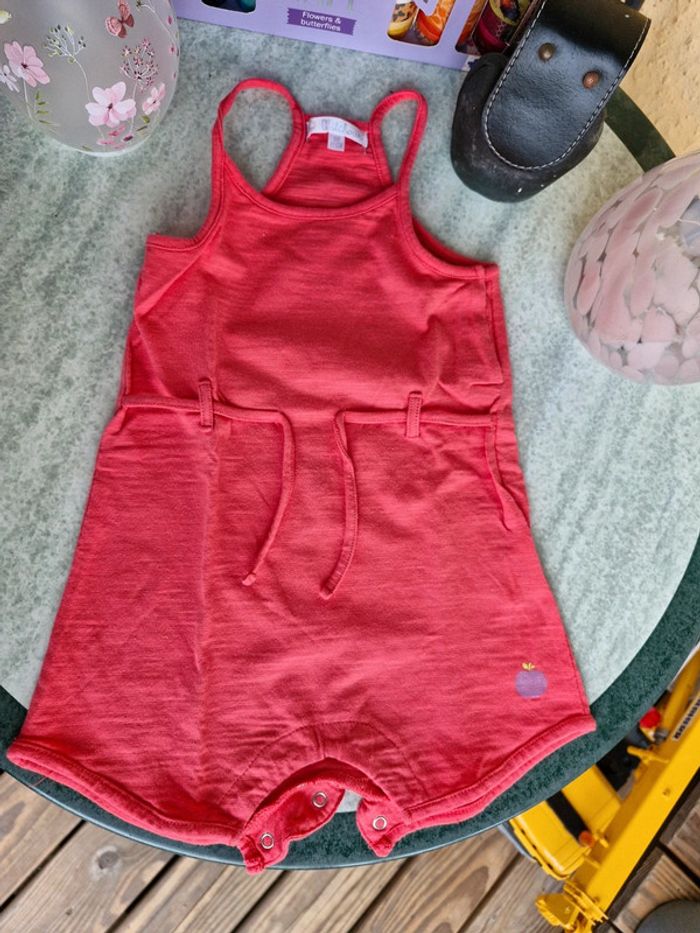 #manouwfille9mois Combishort été fille, couleur rouge, marque orchestra, taille 9 mois. Très bon état