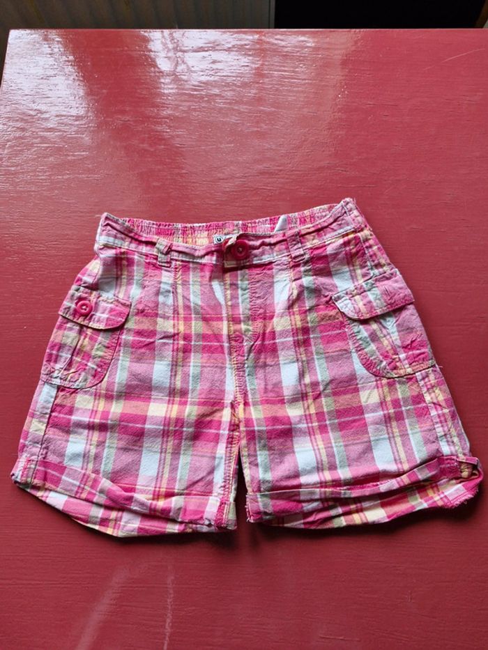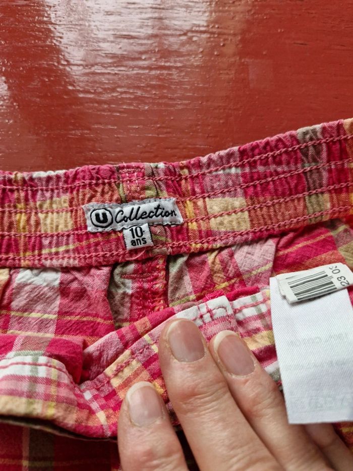 #manouwfille10ans Short été fille, taille élastique à l arrière, 100% coton, couleur fushia et blanc. Taille 10ans marque U collection Très bon état