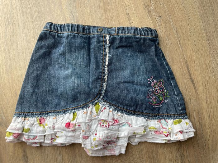 Jupe jean et popeline imprimée fleurs Absorba alphabet 6 mois Neuve