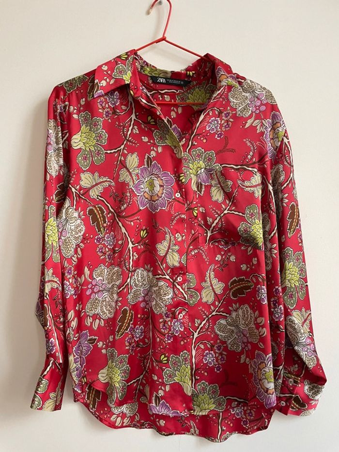 Blouse satinée rouge à motif Zara Taille XS