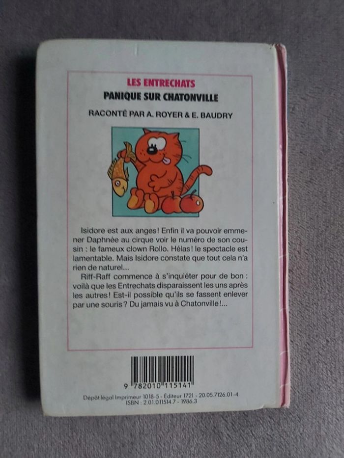 Bonjour, je vends le livre Bibliothèque Rose de la collection "Entrechats". Titre : Panique sur Chatonville de Jean Chalopin. À partir de 6 ans. Prix 2 € le livre.
