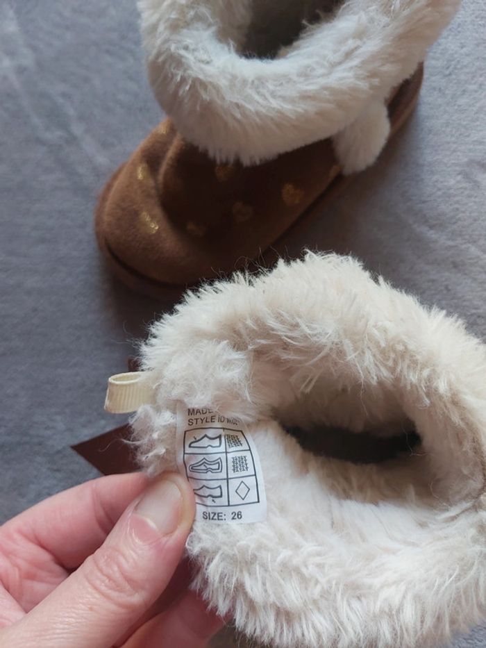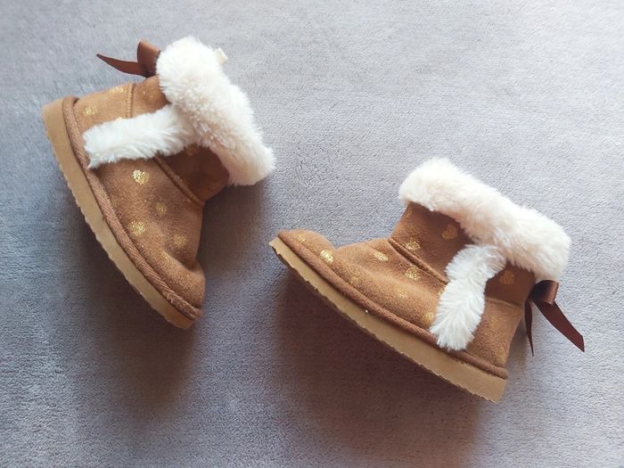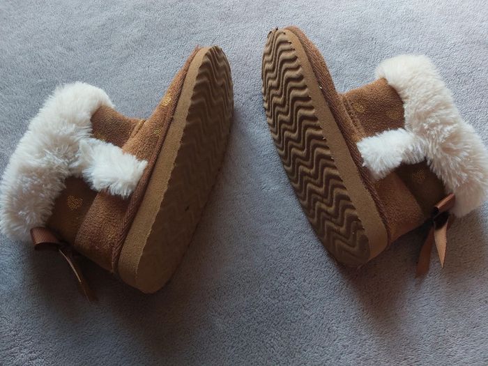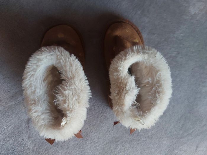 Bonjour, je vends une paire de bottines pour fille. Modèle avec fourrure. Coloris marron et écru. Pointure 26. Marque Kiabi. Prix 4 €.
