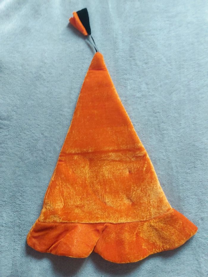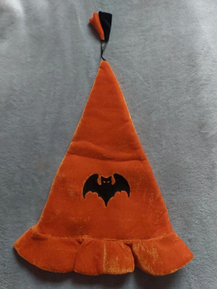 Bonjour, je vends un chapeau Halloween pour enfants ou adultes. Coloris orange et noir. Exterieur 100 % Polyester. Doublure 100 % Coton. Taille L - 59 cm. Marque Yves Rocher. Prix 3 €.