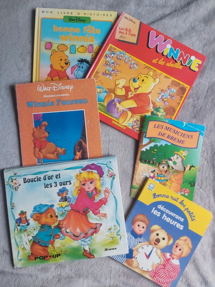Bonjour, je vends un lot de livres pour enfants à partir de 2-3 ans : "Winnie l'ourson", ", "Boucle d'or et les 3 ours" et "Bonne nuit les petits". Prix 5 € le lot.