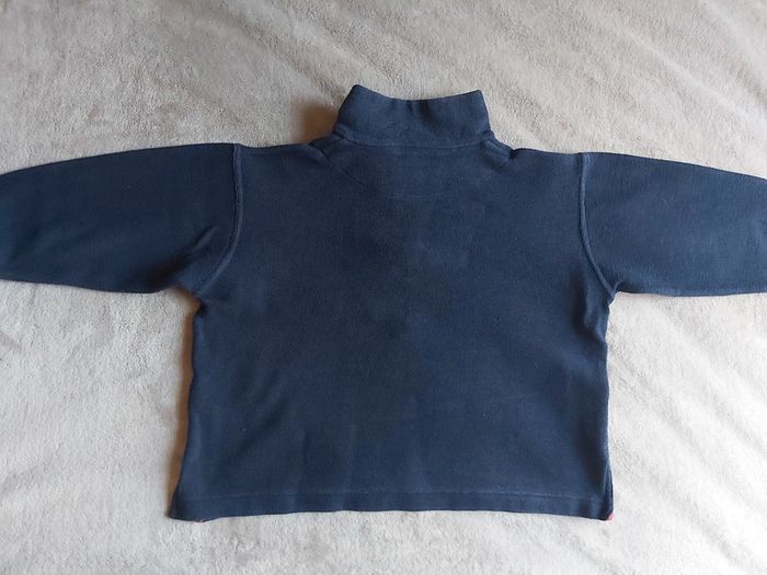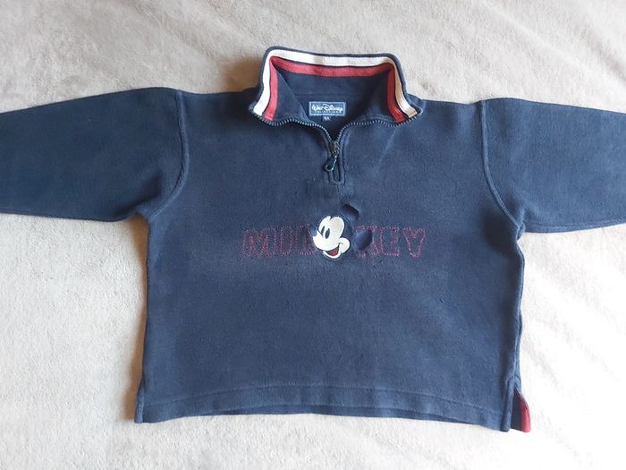 Bonjour, je vends un sweat marine pour garçon. Marque Disney, à l'effigie de Mickey. Manches longues. Ouverture zippée au col. Taille 6 ans. 100 % Coton. Prix 1 €.