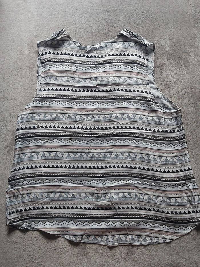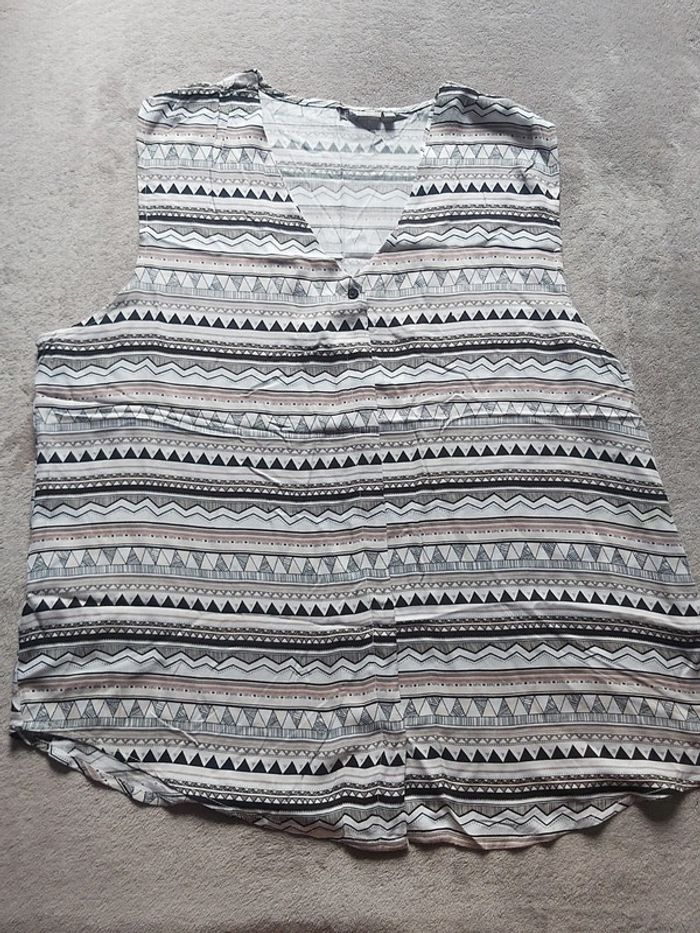 Bonjour. Je vends un chemisier pour femme. Débardeur, fermeture à boutons. Coloris noir et blanc. Taille 46. Marque Eldys. Prix 6 €.