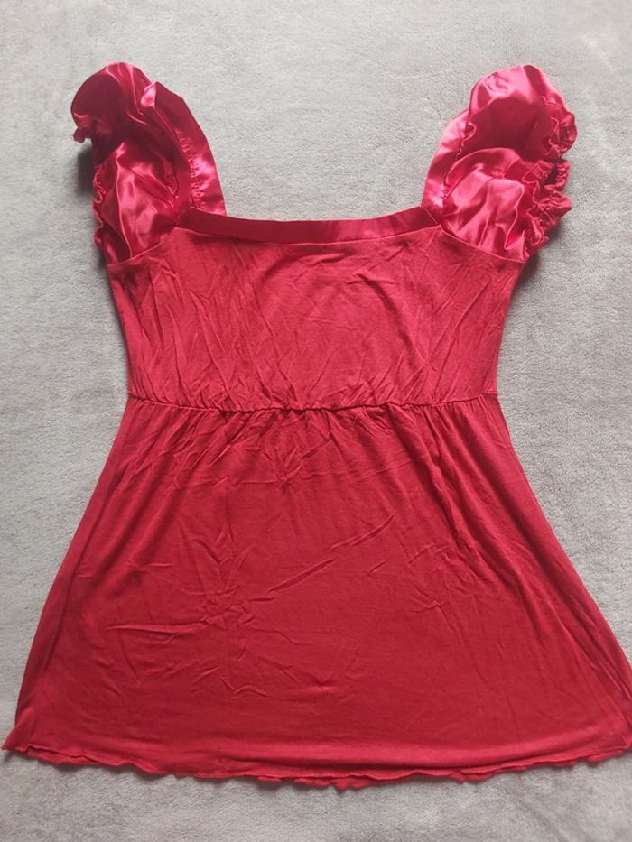 Bonjour, je vends un débardeur rouge uni pour femme. 95 % Viscose 5 % Élasthanne. Les bretelles larges sont satinées. Taille 38. Prix 4 €.