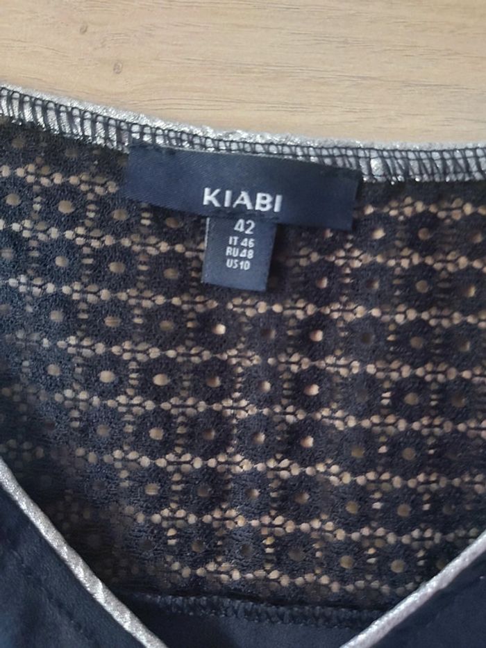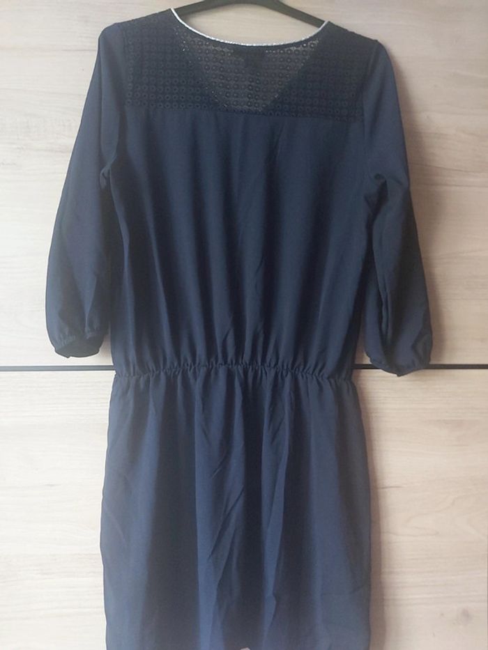 Bonjour, je vends une robe bleue marine. Manches 3/4. Élastiquée aux manches. Effet dentelles aux épaules. Taille 42. Marque Kiabi. Prix 8 €.