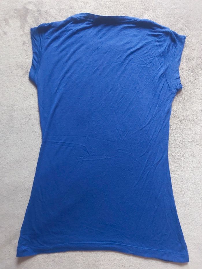 Bonjour, je vends un T-Shirt bleu pour femme. Manches courtes. Motif "Converses" avec strass. 98 % Viscose 2 % Élasthanne. Taille unique (38). Marque Bisou's Project. Prix 5 €.