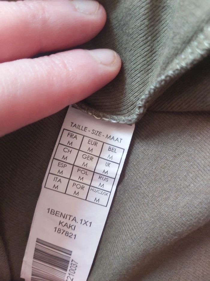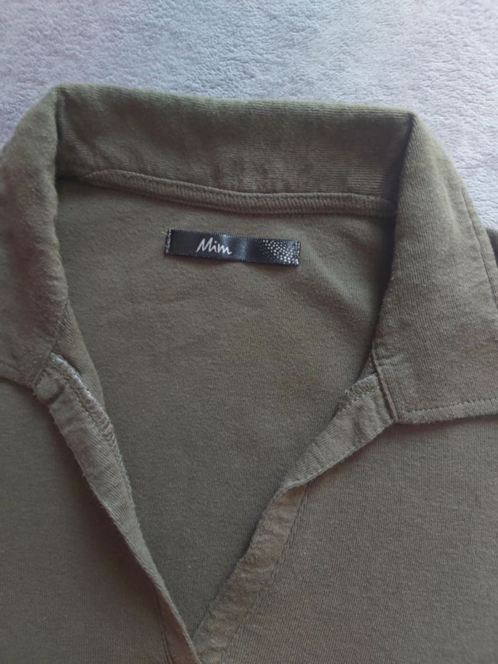 Bonjour, je vends un polo kaki pour femme. Manches courtes. Modèle uni. Taille M (38). 100 % Coton. Marque Mim. Prix 2 €.