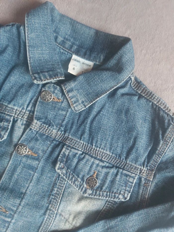 Bonjour, je vends une veste en Jeans Bleu pour Garçon. Fermeture à boutons. 2 poches avant + 2 poches sur le côté. 100 % Coton. Motif dans le dos. Taille 6 ans. Prix 5 €.