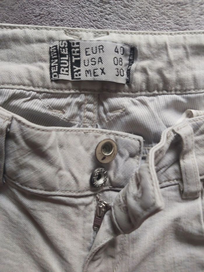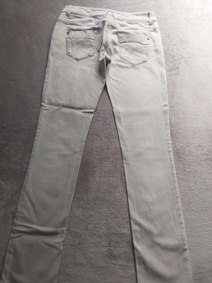 Bonjour, je vends un Jeans gris pour femme. Fermeture à glissière + 2 boutons. 2 poches avant + 2 poches arrière. 98 % Coton 2 % Élasthanne. Taille 40. Prix 5 €.