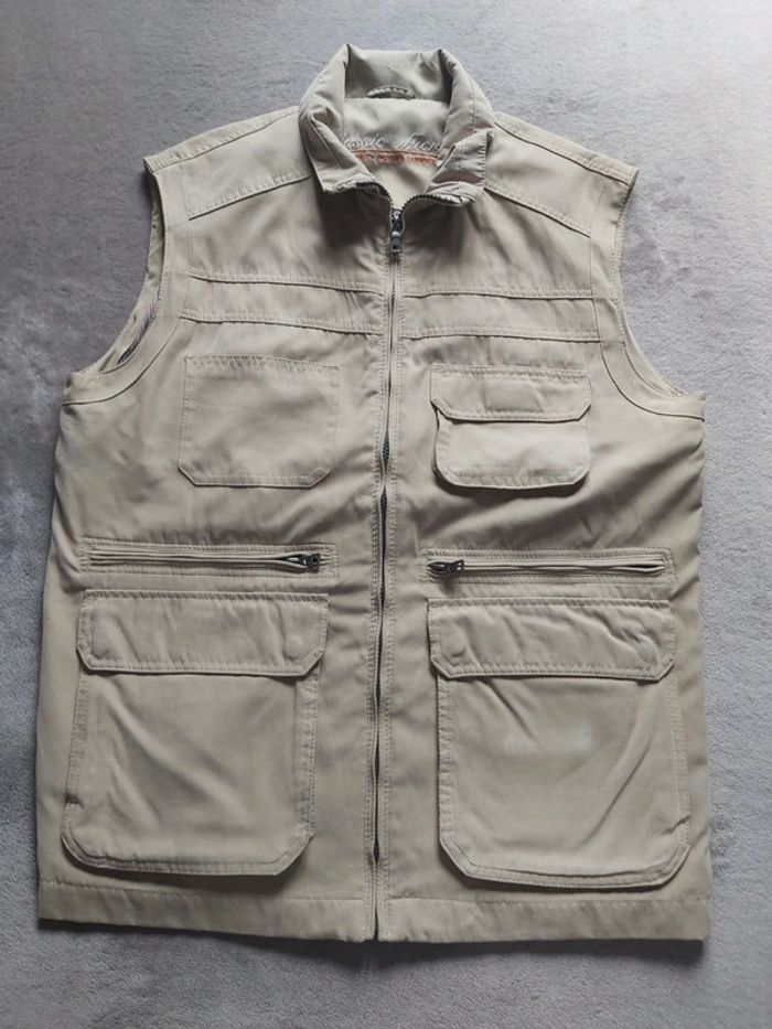 Bonjour, je vends un gilet beige pour homme. Fermeture zippée. Mutipoches intérieures et extérieures. Taille M. Marque Classic Micro. Prix 10 €.