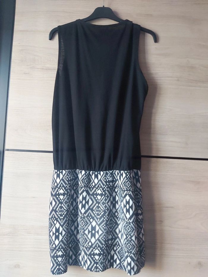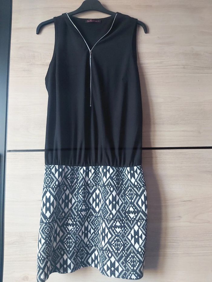 Bonjour, je vends une robe noire et blanche. Sans manches. Ouverture zippée. Taille 42. Marque Fashion Private Company. Prix 10 €.