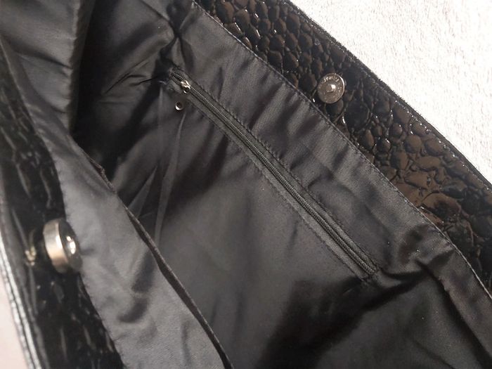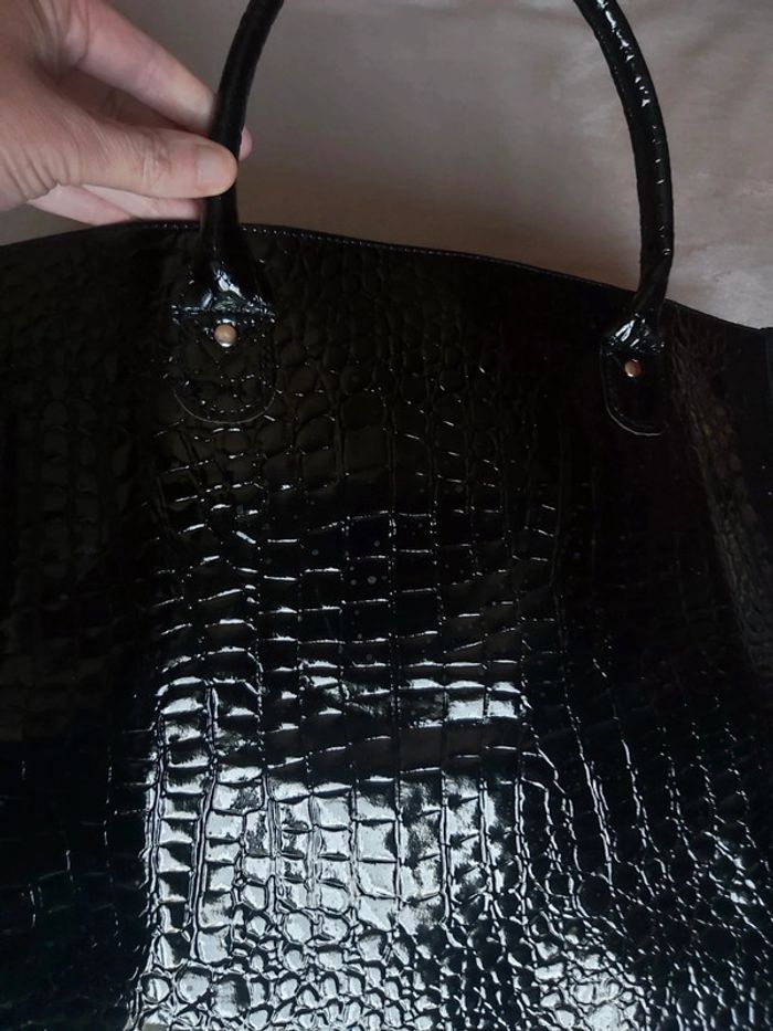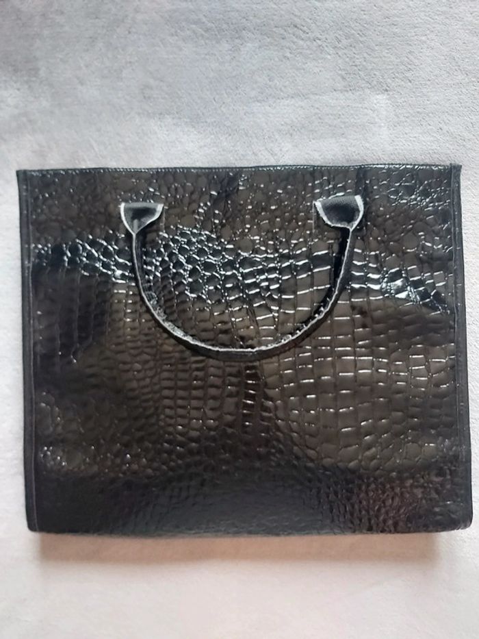 Bonjour, je vends un sac à main noir, neuf en relief de crocodile. Avec 2 anses. Fermeture à pression. Pochette zipée à l'intérieur. Très grande contenance. Hauteur 36 cm. Longueur 41 cm. Prix 20 €.