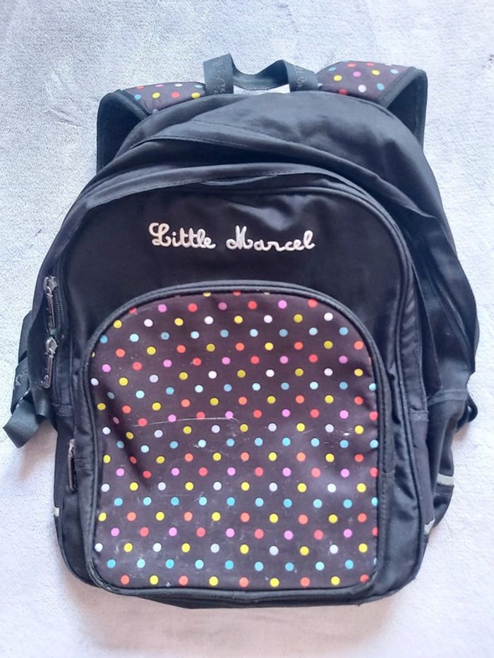 Bonjour, je vends un sac à dos de marque Little Marcel, à pois. 2 grandes poches + 1 plus petite devant. Fermetures zippées. Hauteur 45 cm. Prix 15 €. Je vends également le porte-monnaie assortie dans mes annonces.