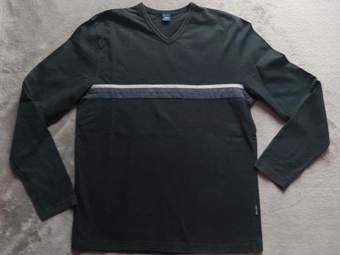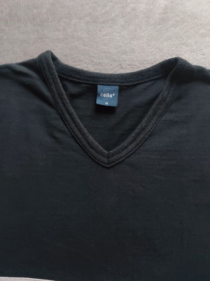 Bonjour, je vends un T-Shirt bleu marine pour homme. Manches longues. Col V. 100 % Coton. Taille M (38). Marque Célio. Prix 5 €.