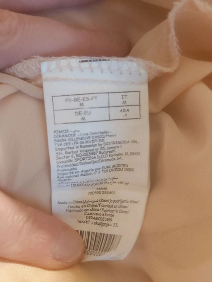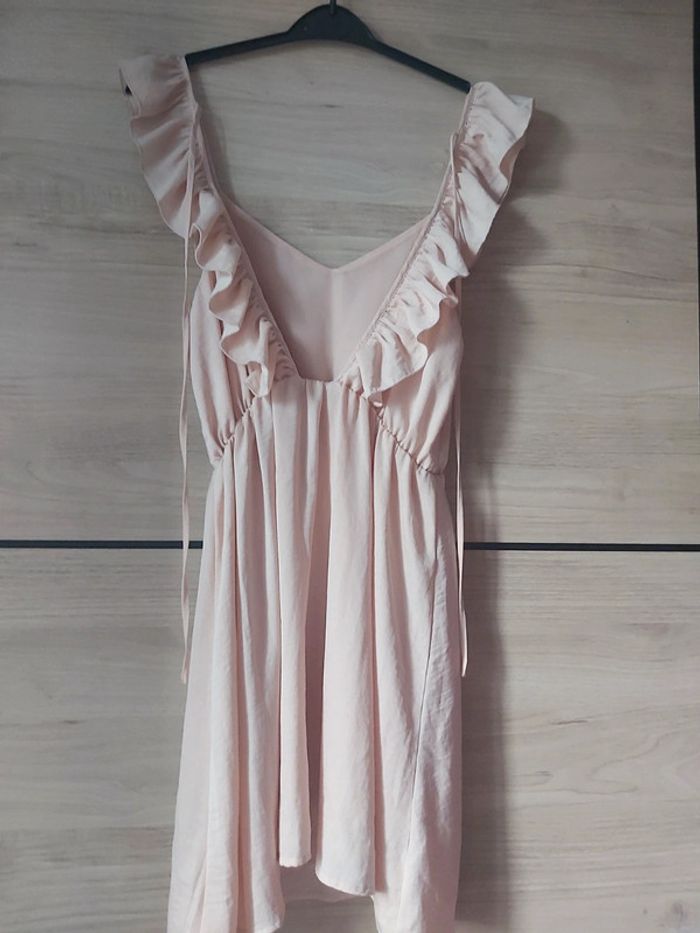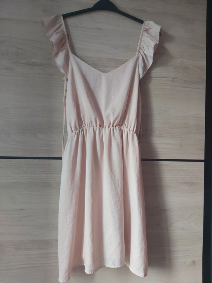 Bonjour, je vends une robe rose poudrée. Modèle à bretelles. Doublure 100 % Polyester. Taille M (38). Marque Pimkie. Prix 3 €. (Une petite tâche devant, voir photo).