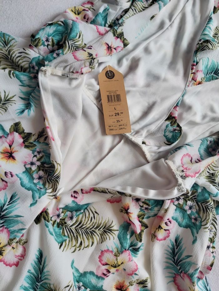 Bonjour, je vends une Combi Short fleurie neuve, jamais portée. Marque Tally Weijl. Taille L. 97 % Polyester 3 % Élastane. Fermeture à glissière dans le dos. Valeur 29.99 €. Prix 25 €.