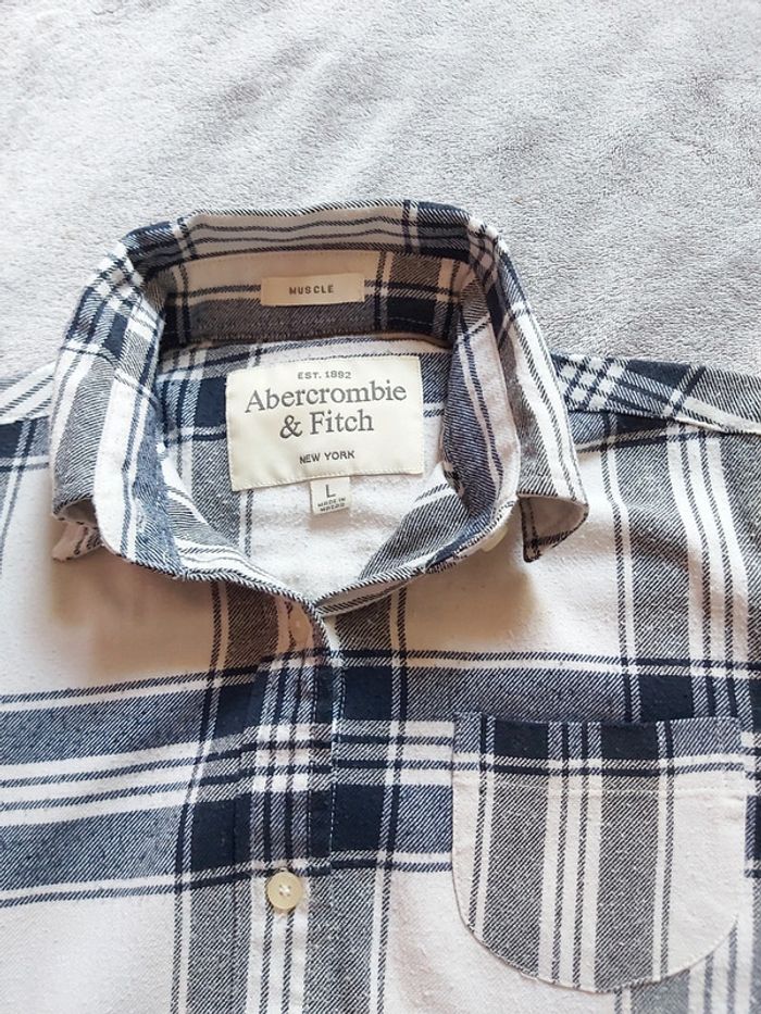 Bonjour, je vends une chemise femme à carreaux blanc et noir à manches longues. Taille L, une poche sur le devant. Marque Abercrombie & Fitch. Prix 12 €.