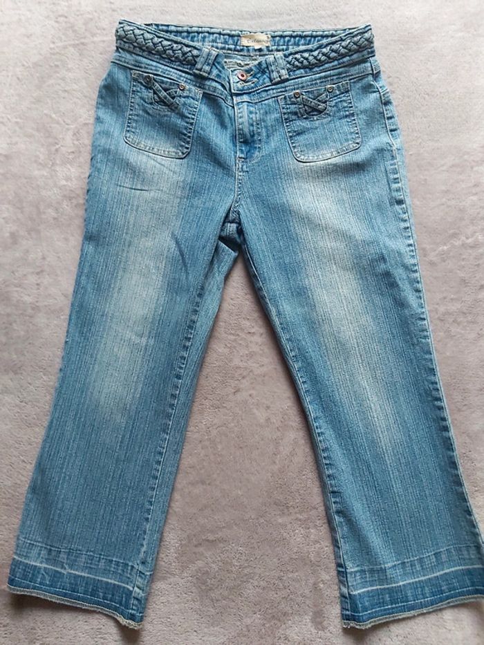 Bonjour, je vends un Jeans Pantacourt pour femme. Taille 38. Fermeture à glissière + bouton. 2 poches avant + 2 poches arrière. Prix 3 €.