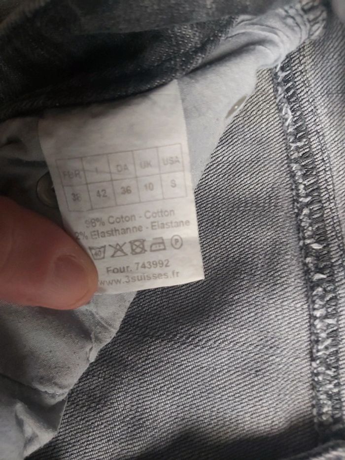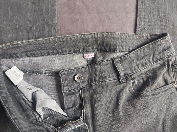Bonjour, je vends un Jeans gris pour femme. Marque 3 Suisses. Fermeture à glissière + bouton. 2 poches avant et 2 poches arrière. Taille 38. Prix 5 €.