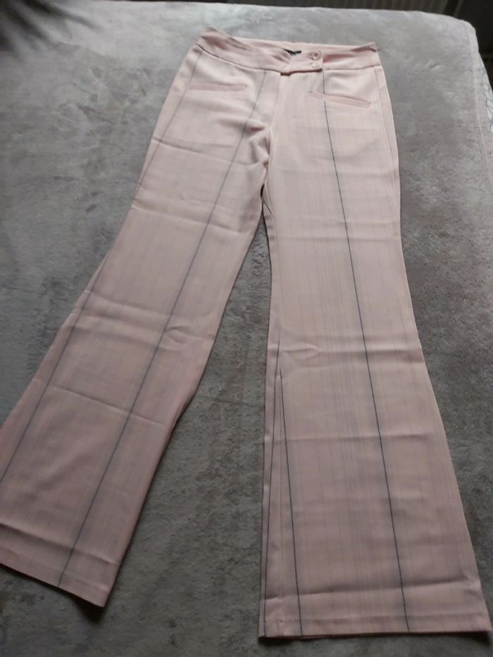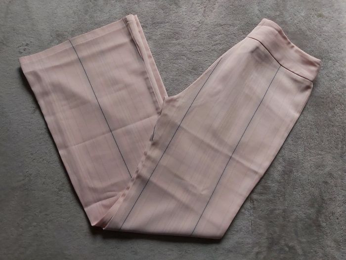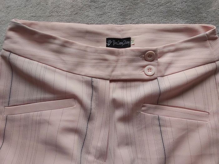 Bonjour, je vends un pantalon pour femme en taille 38. Fermeture à glissière + boutons. Couleur Rose, à rayures. 2 poches imitation avant. Prix 5 €.
