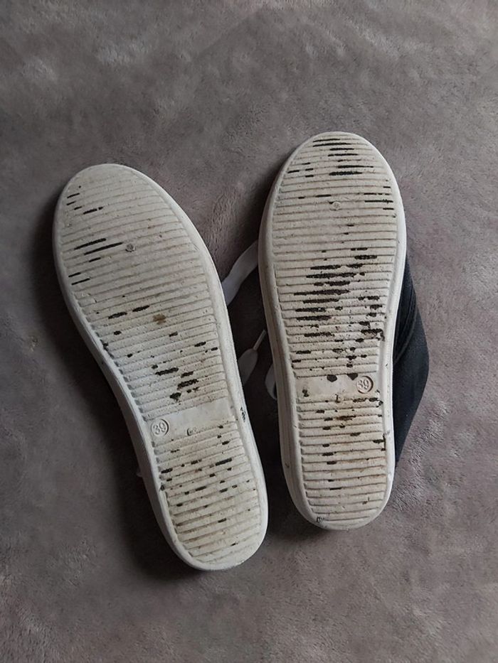 Bonjour, je vends une paire de baskets noirs en toile, pointure 39. Prix 2 €.