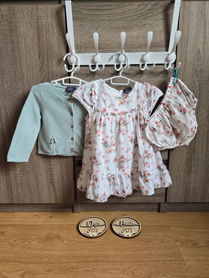 Lien direct vers les tailles équivalentes dans mon dressing : #fdhsarah18mois #fdhsarahSGMJ 📜 Ensemble comprenant : - Une robe + bloomer blanche fleurie rose et des papillons Ref : FAIRIS - Un gilet couleur menthe/vert clair, avec 2 petites noeuds sur le devant Collection : Mon voisin le perroquet Taille 📏 : 18 mois 80 cm État 🔍 : Très bon état Marque 🏷️ : Sergent Major Je suis disponible pour toutes questions ou photos supplémentaires. 📦 L’envoi se fait le plus rapidement possible Autres plate-formes : Beebs et Leboncoin. Bon Shopping
