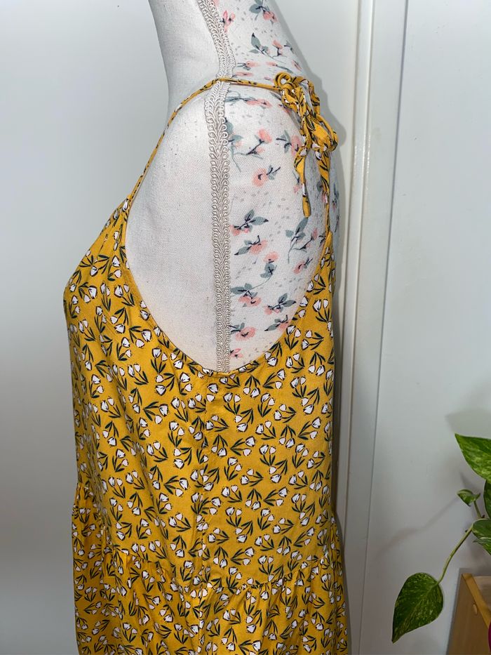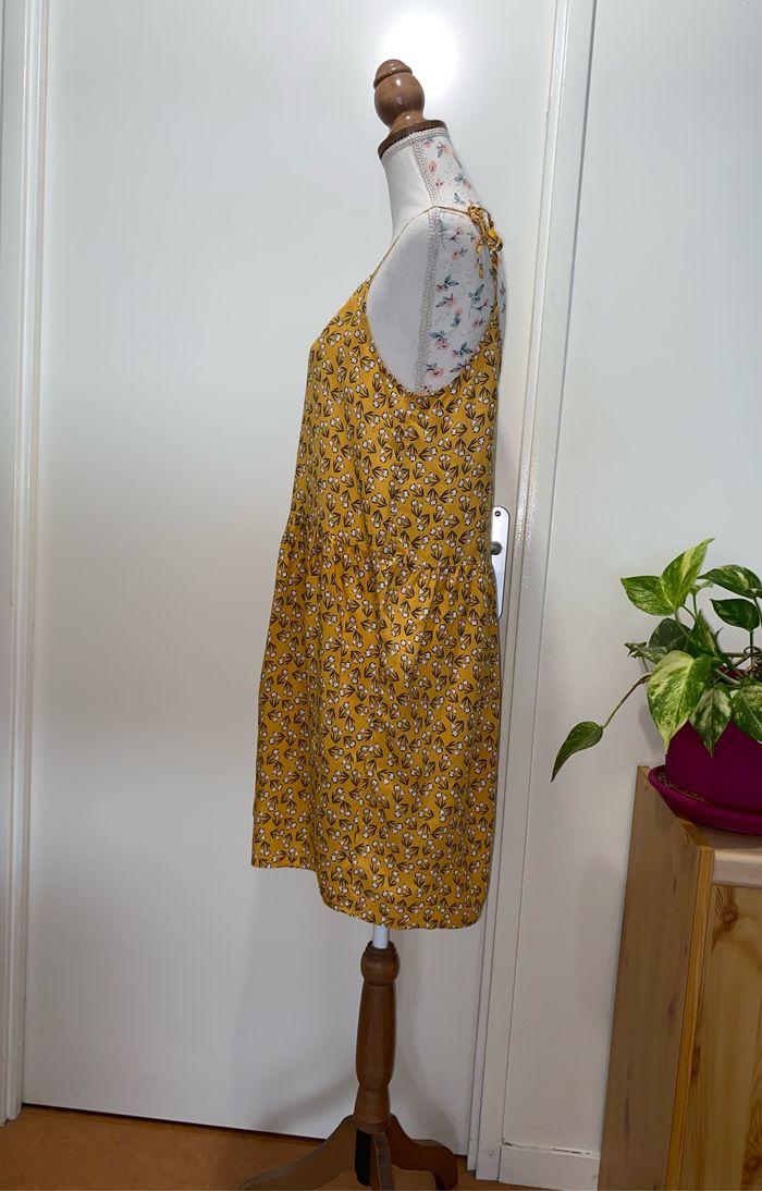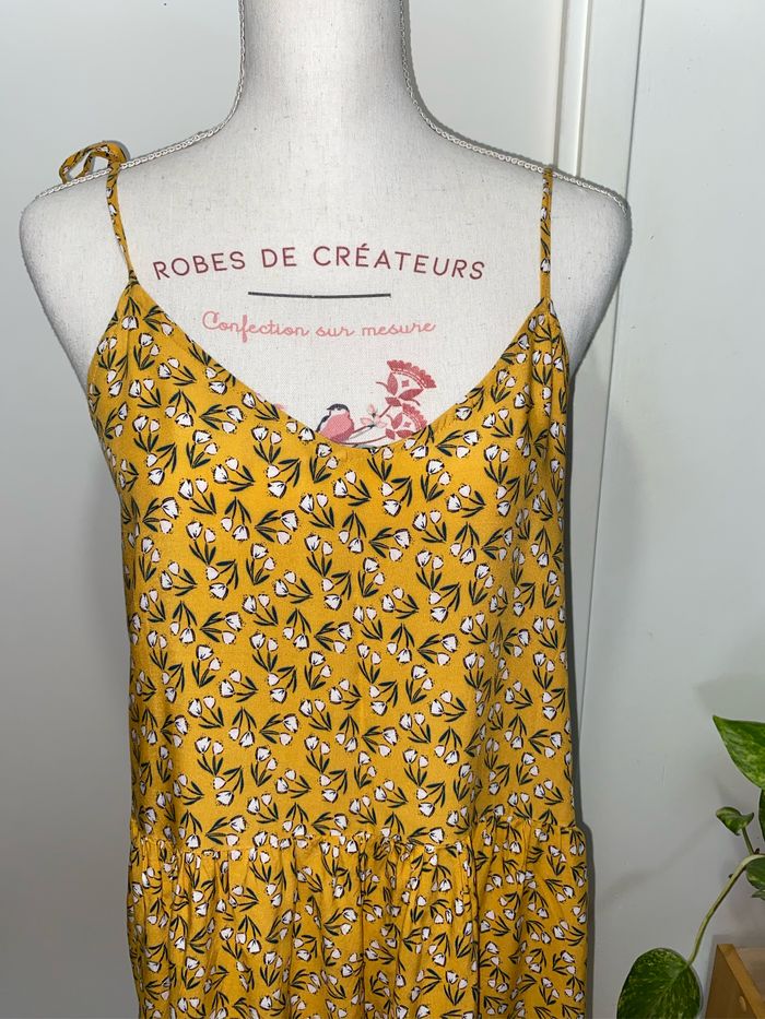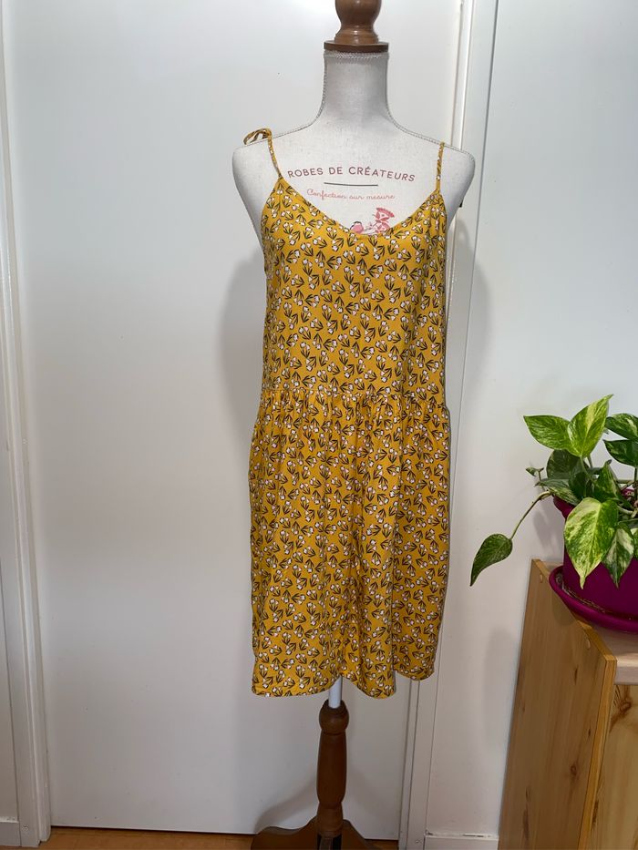 Robe 👗 léger à bretelles été femme Kiabi Taille 38 L’étiquette a l’intérieur a été coupé Couleur jaune a fleurs 🌷 blanche Dimensions: largeur des aisselles 48cm, Largeur de la taille 50cm, Longueur 87cm, En excellent état Envoie en mondial relay ou chronopost Ou Relais colis 📦 Ou a venir chercher a mon domicile Envoie Rapide 👍