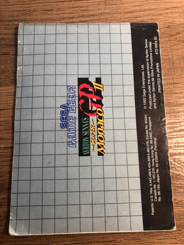 Notice mode d’emploi jeux vidéo sega Game gear super monaco GP II
