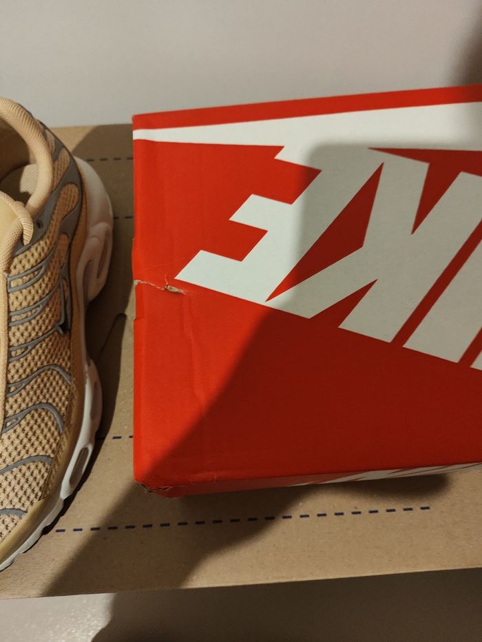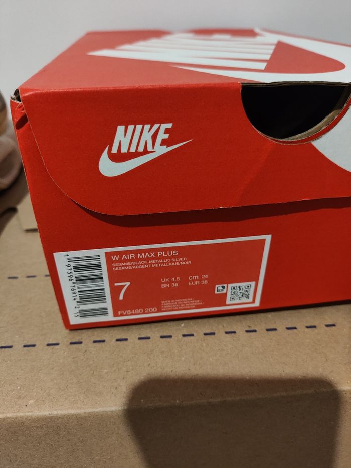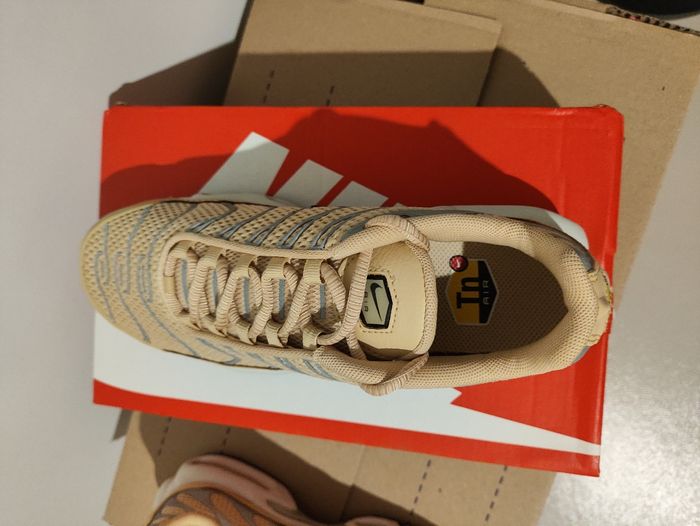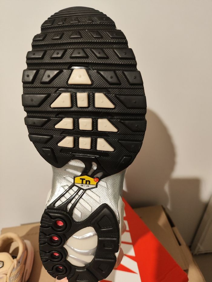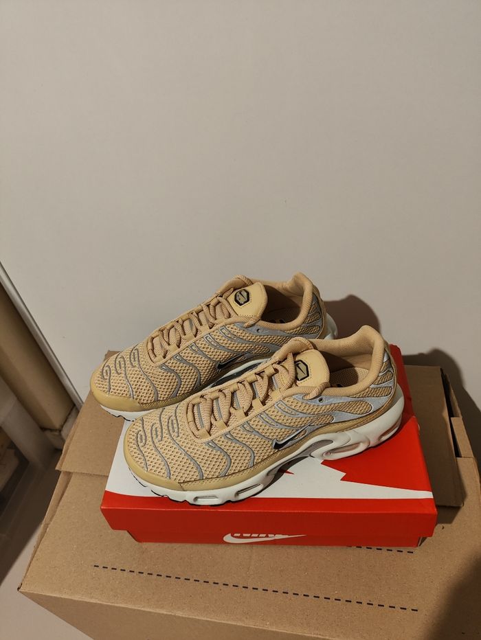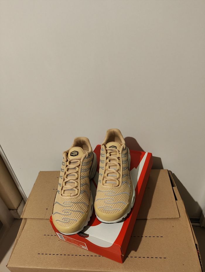 Bonjour je vends cette paire d'air max plus marron clair avec des finitions argentés+ brillent dans le noir. Neuves/ jamais portées/ taille 38 Elles sont authentiques, donc j'ai la facture si vous voulez je peux vous l'envoyer en message . Appart la boîte qui est abîmée tout est en superbe état 👍
