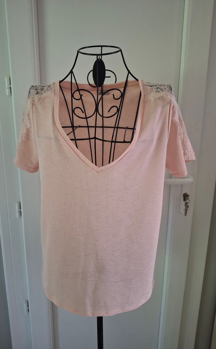 Tee shirt polyester rose clair pimkie Manches ajourées