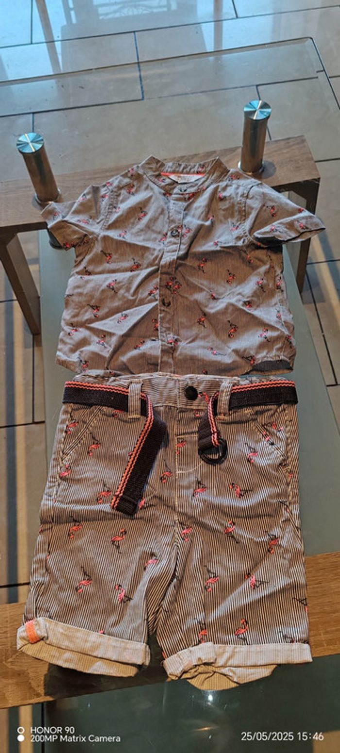 Chemise et short avec ceinture Flamand rose Primark Taille 12-18 mois #t80_bebe_leslietressy #t86_bebe_leslietressy