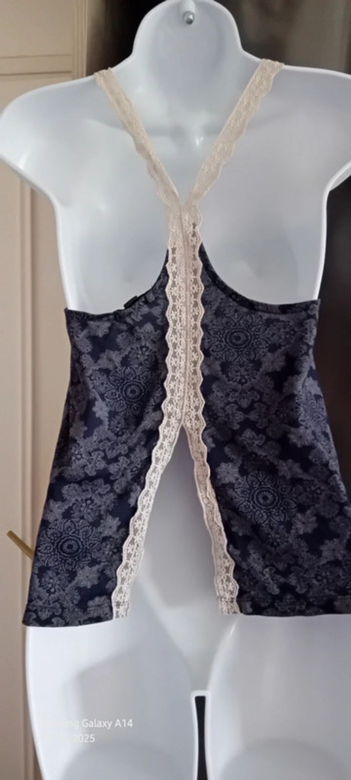 Top court fines bretelles avec broderies dos ouvert imprimé floral indien marine femme S jennyfer - photo numéro 1