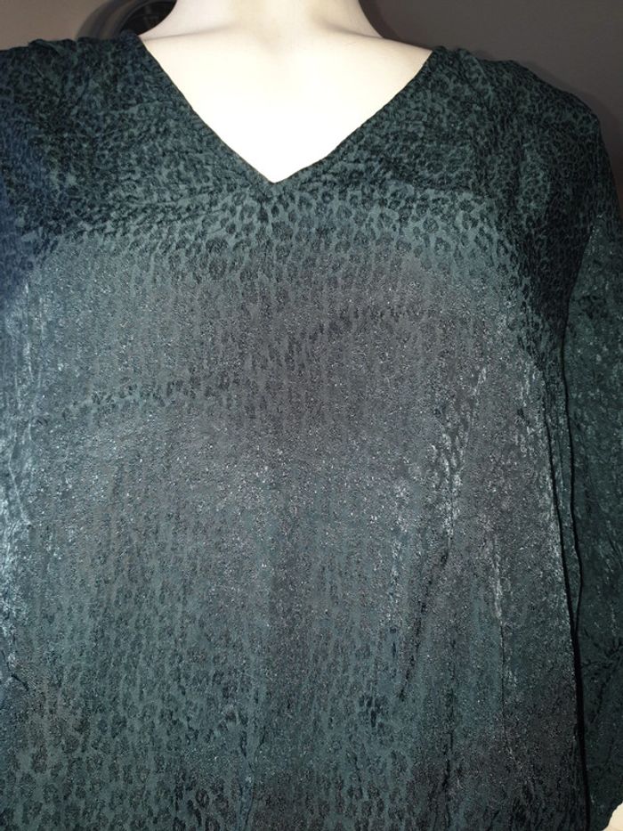 On voit pas la couleur sur les photos, il s'agit d'un bleu canard avec motifs léopard. Taille 40