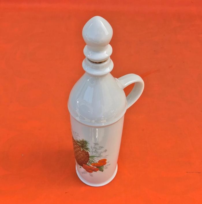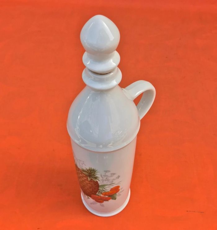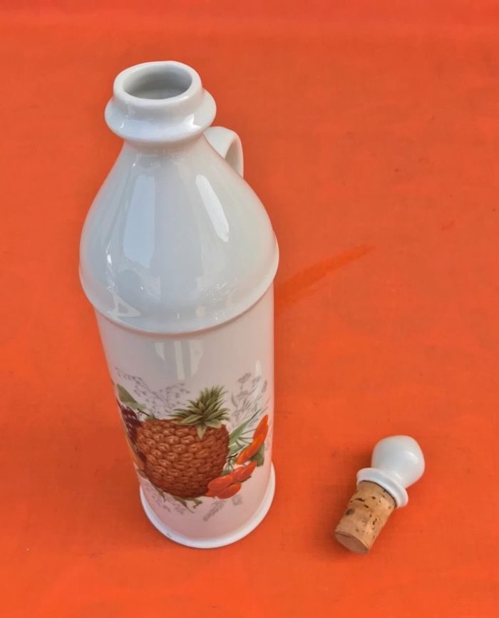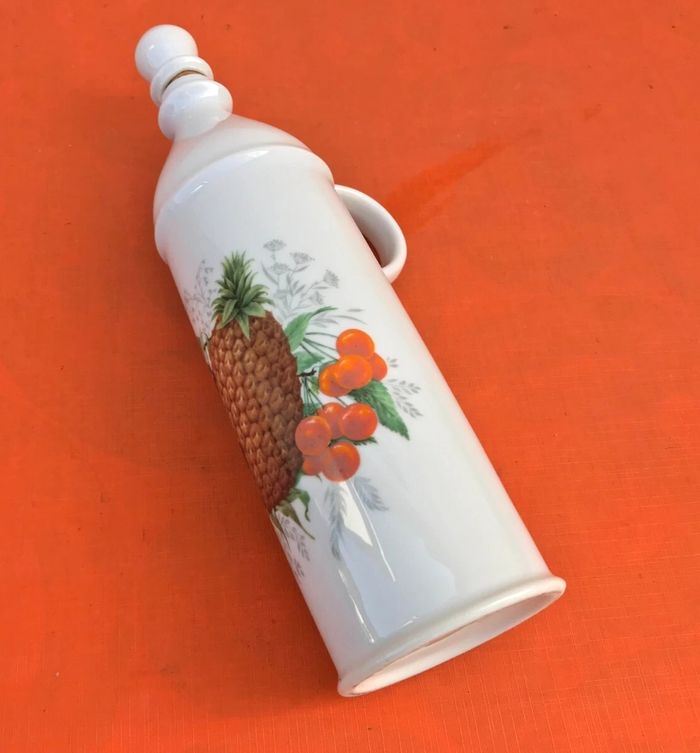 Bouteille à anse  Porcelaine blanche à décor de fruits - photo numéro 1