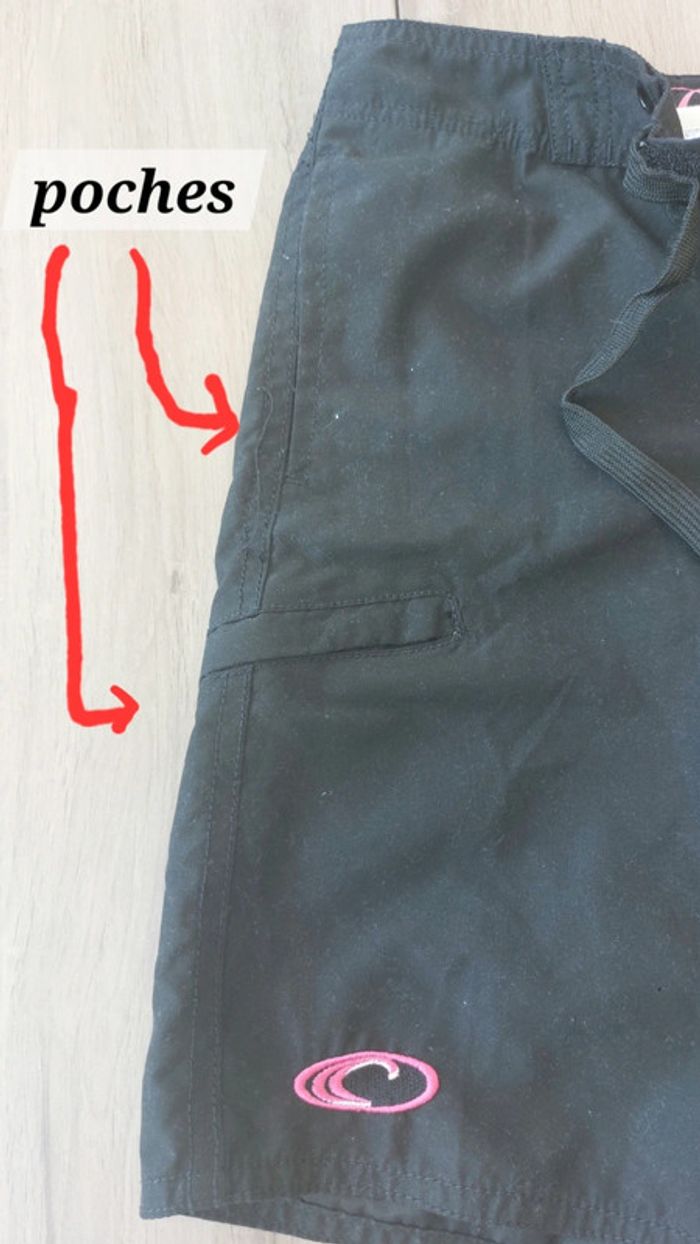 Short / bermuda avec un slip en maille amovible. 2 poches sur le côtés gauche. Fermeture du short avec un scratch et un laçage.