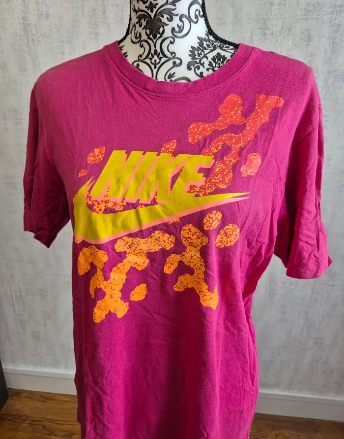 NIKE T-shirt manche courte rose fuchsia et jaune taille 36 S - photo numéro 1