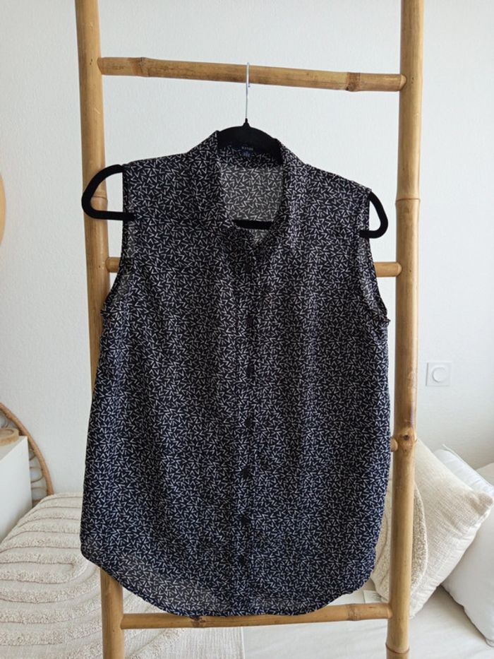 Blouse chemisier sans manches noire à motifs taille M - photo numéro 1