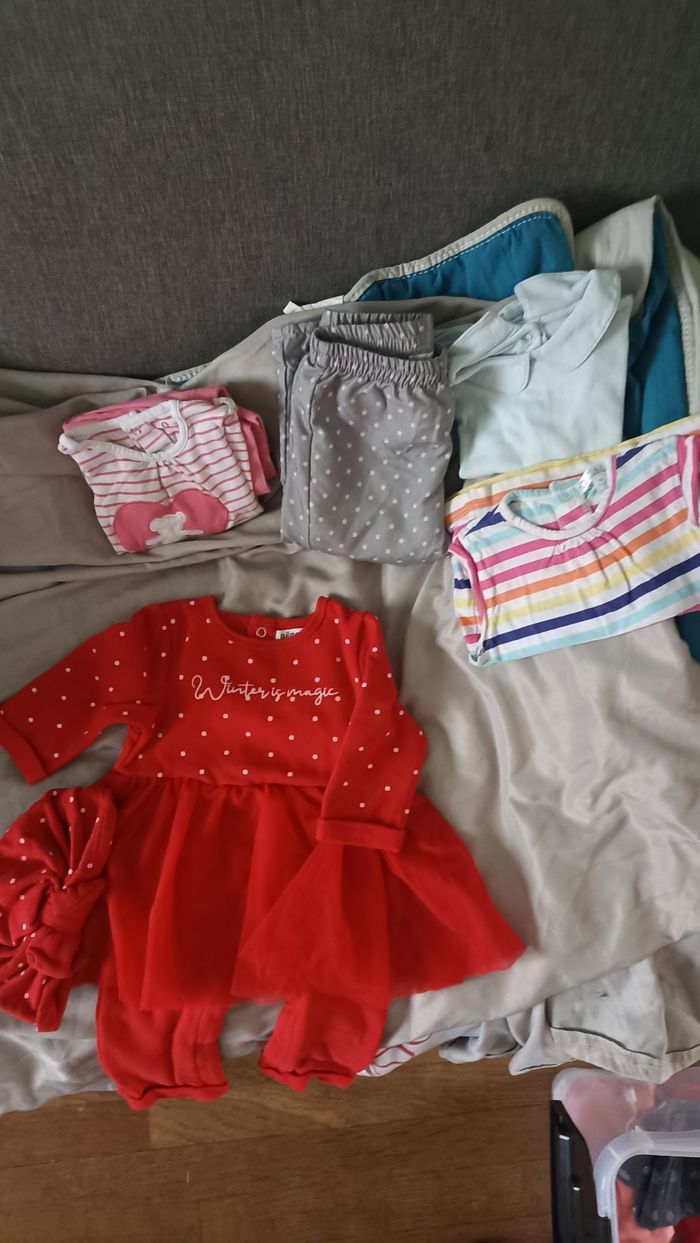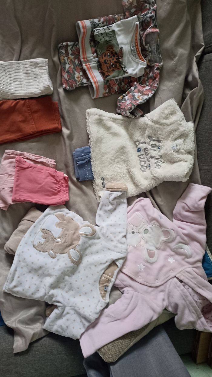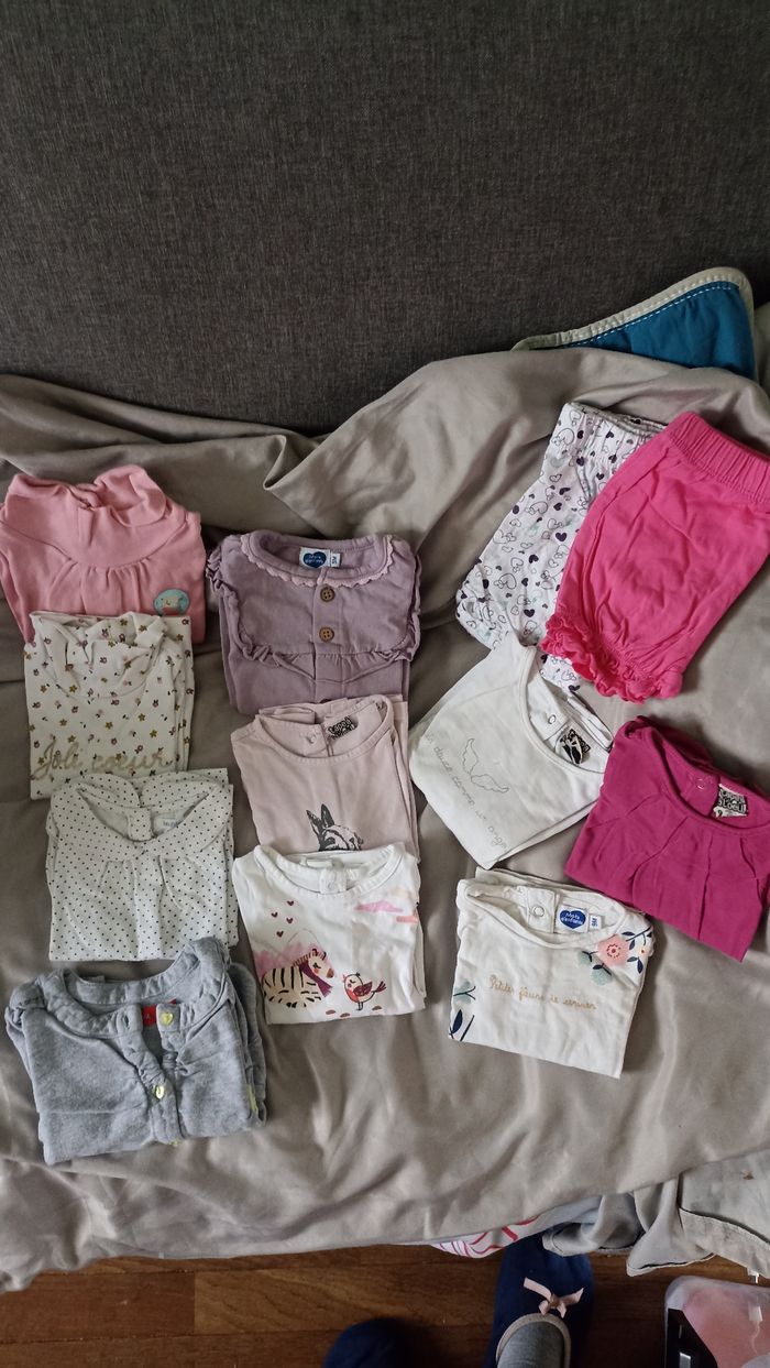 Lot vêtements 9 mois fille Bodies Pyjama Robes T shirt Pull gilet Short