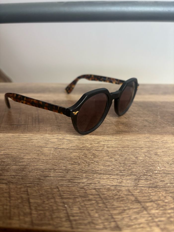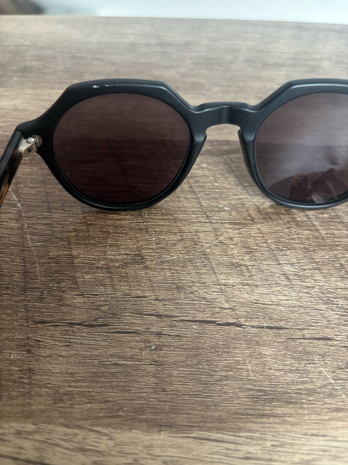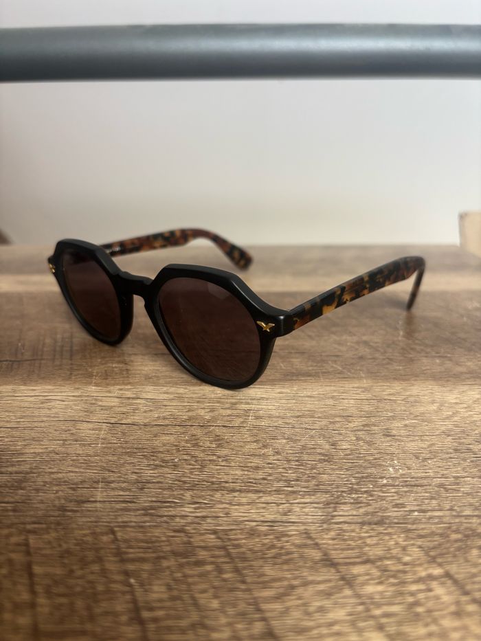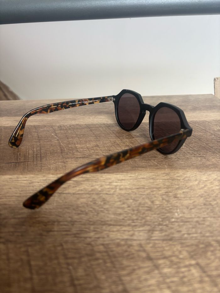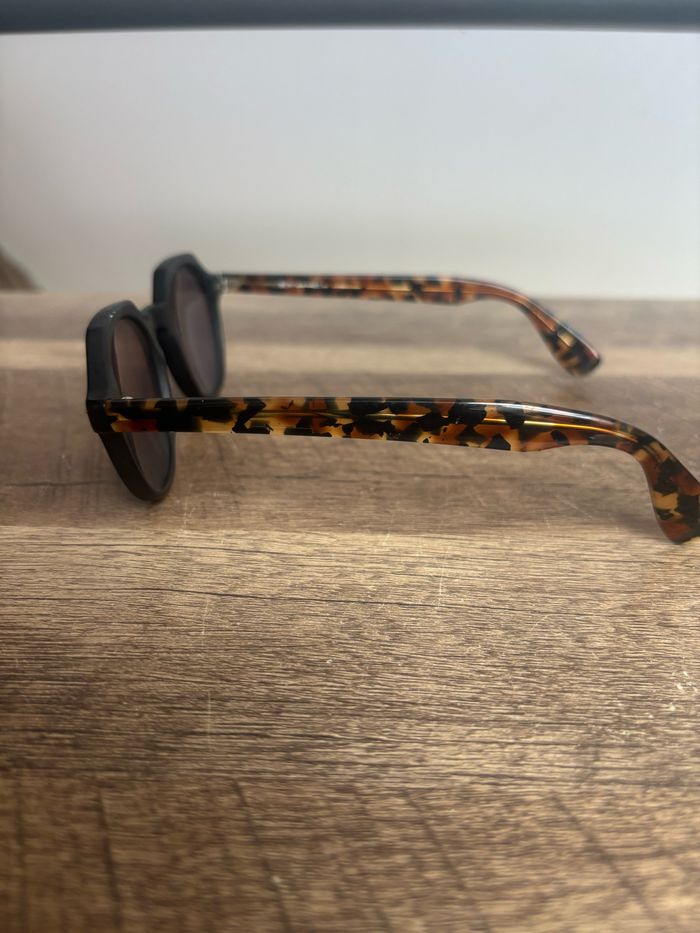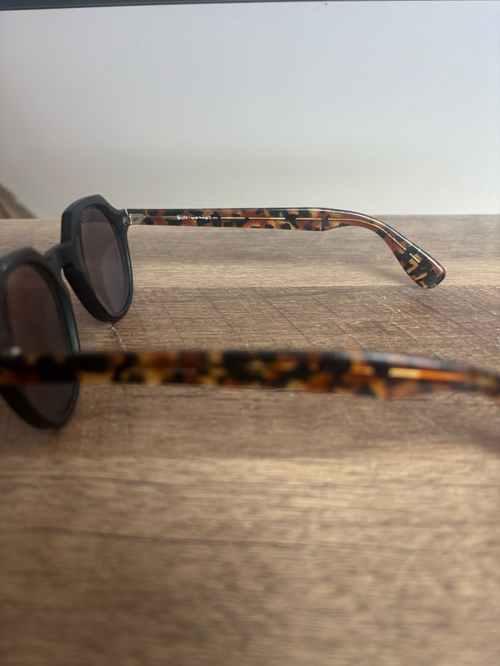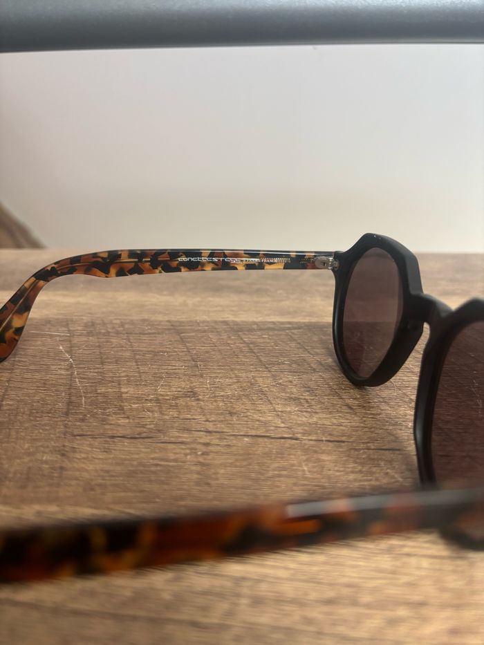 Lunette de soleil taille unique, les verres ont été remis à neuf par un opticien, motif panthère marron jaune foncé.